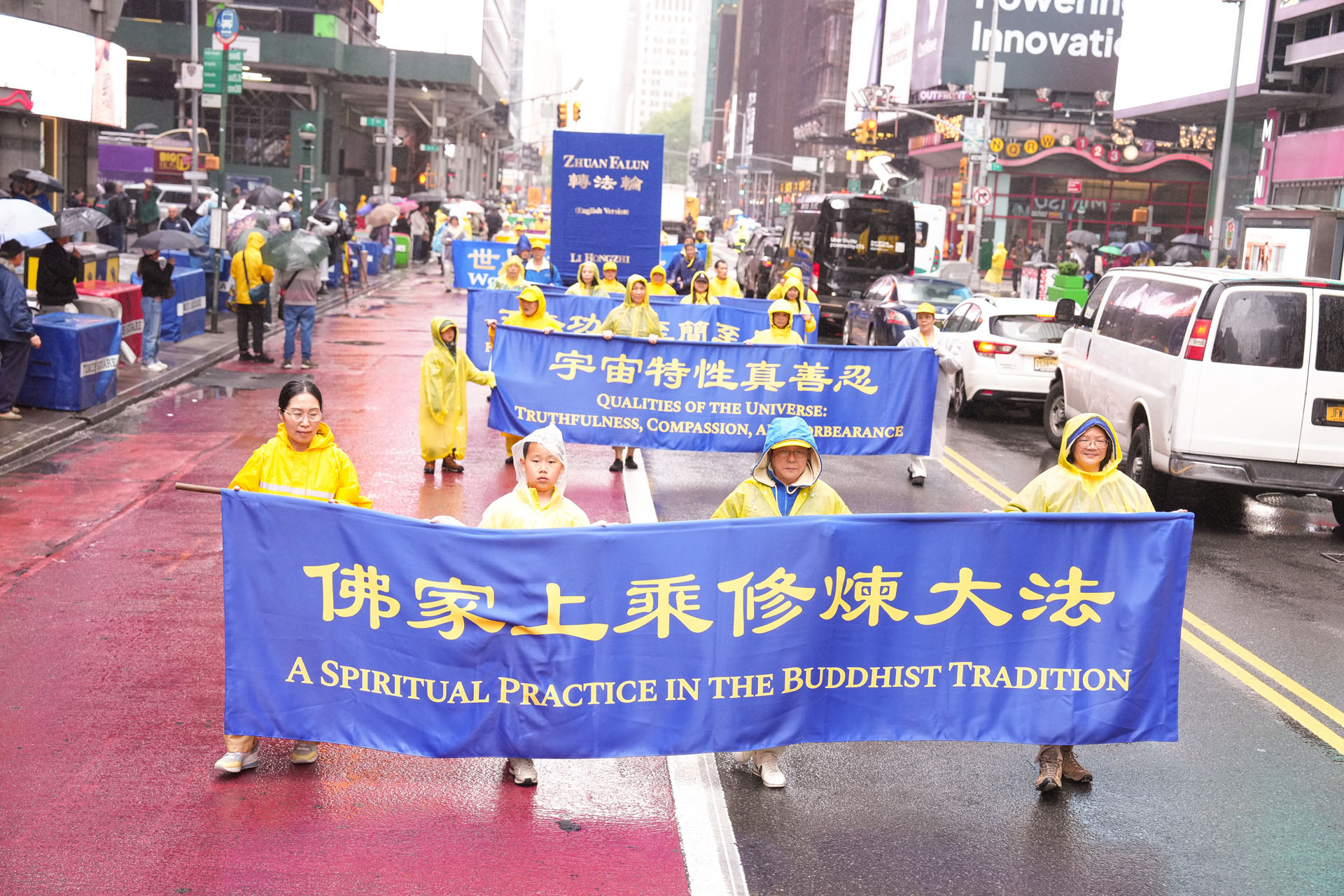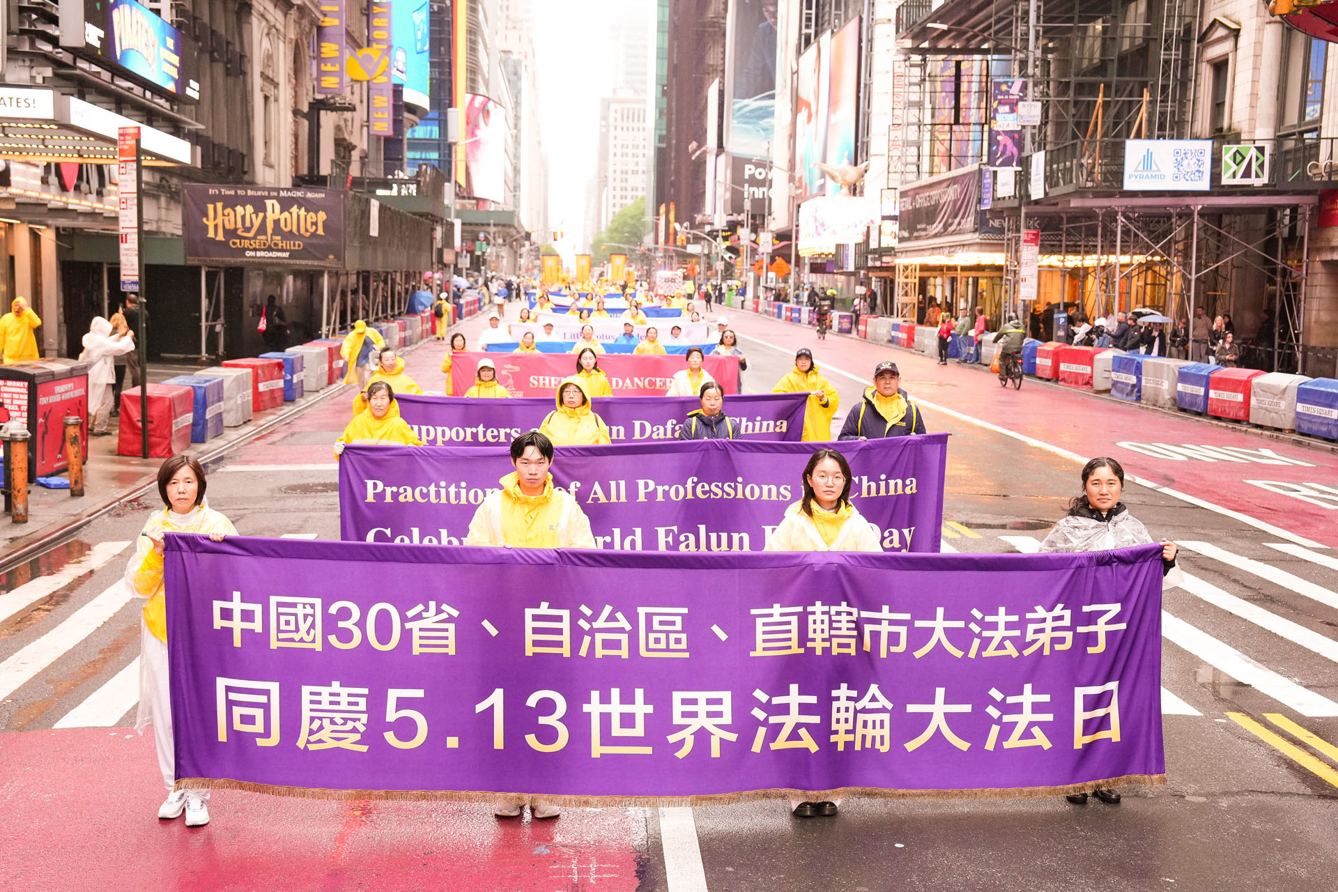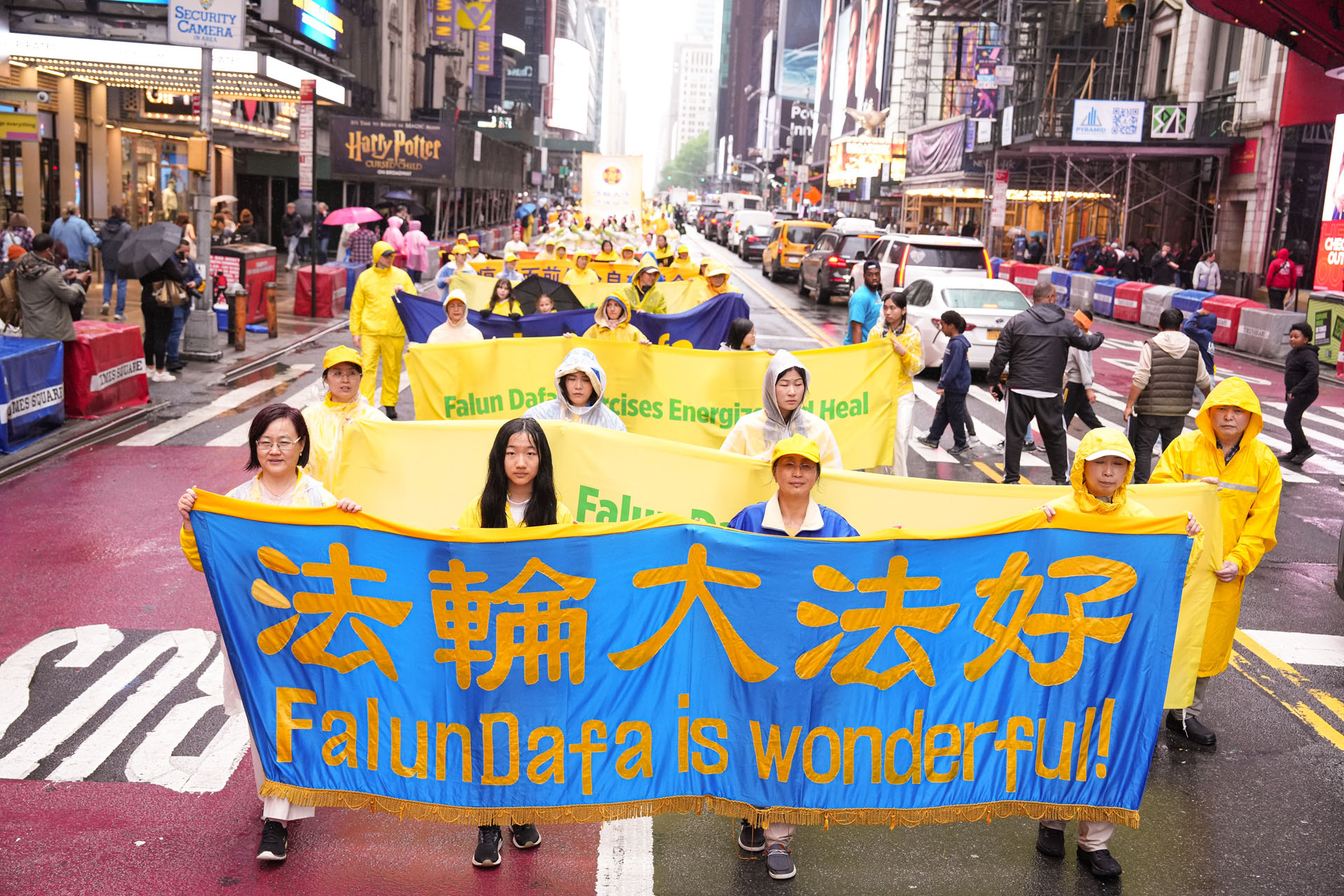 【明慧網二零二五年五月十一日】一年一度的五月十三日是「世界法輪大法日」。二零二五年五月九日(週五),為了頌讚真善忍,分享法輪大法給人們帶來的身心健康與希望,數千名法輪功學員冒雨在紐約市的曼哈頓區舉行了一年一度的盛大遊行,各族裔人士紛紛駐足觀看。