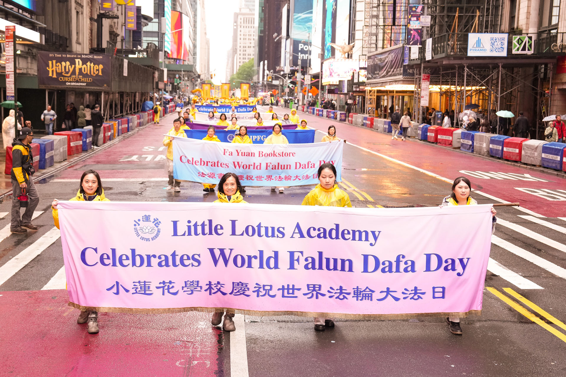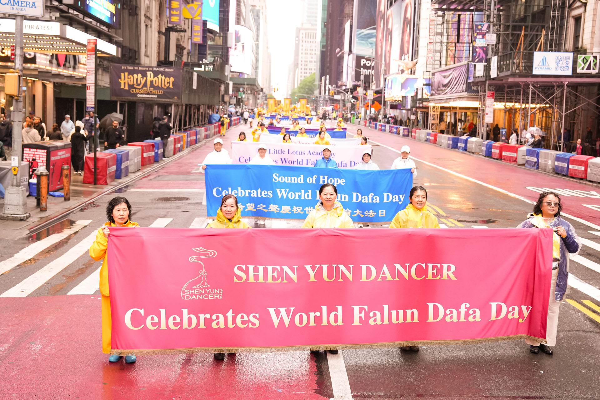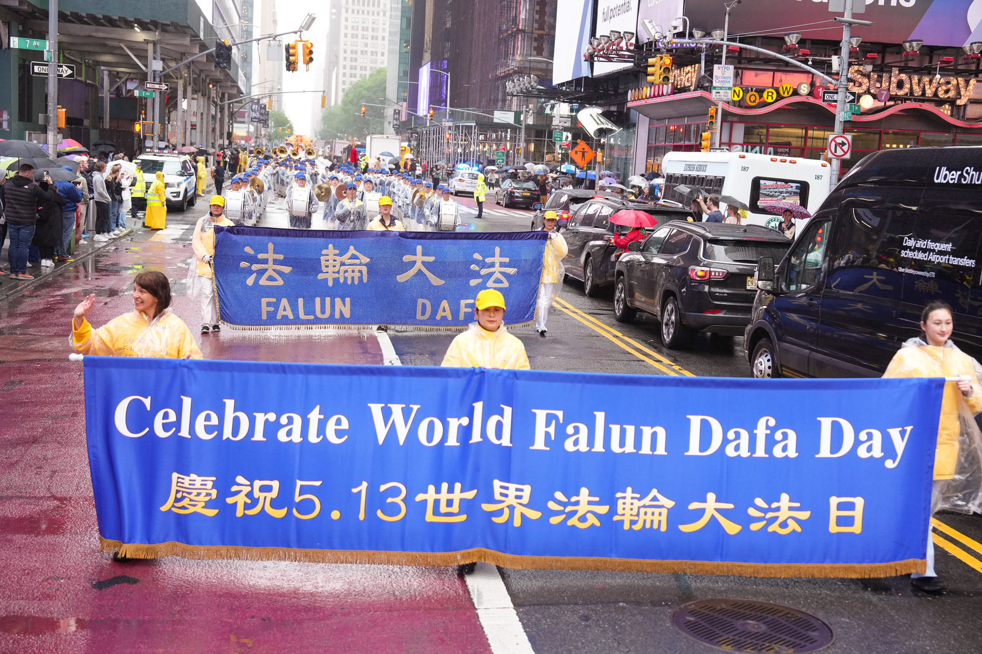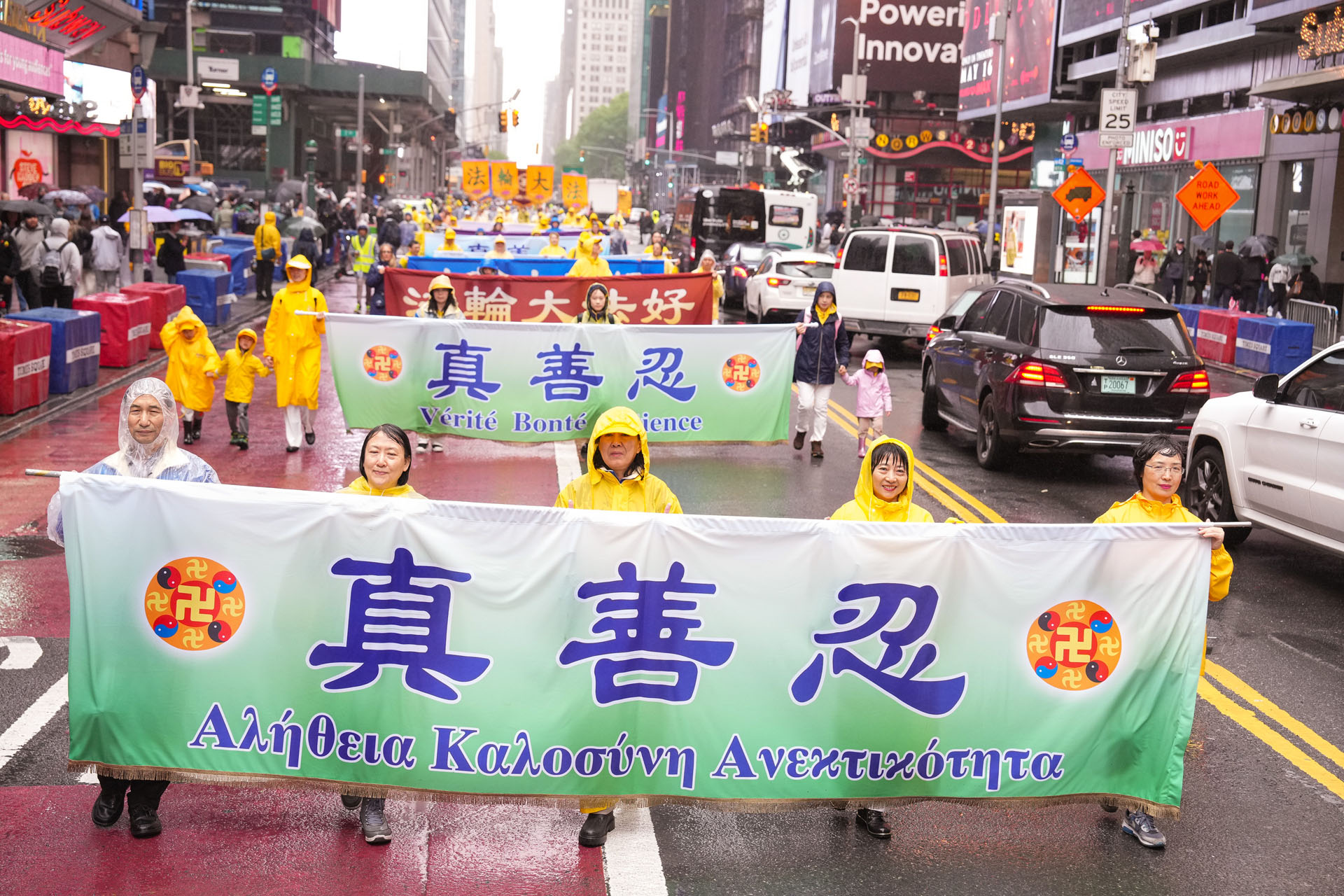 【明慧網二零二五年五月十一日】一年一度的五月十三日是「世界法輪大法日」。二零二五年五月九日(週五),為了頌讚真善忍,分享法輪大法給人們帶來的身心健康與希望,數千名法輪功學員冒雨在紐約市的曼哈頓區舉行了一年一度的盛大遊行,各族裔人士紛紛駐足觀看。