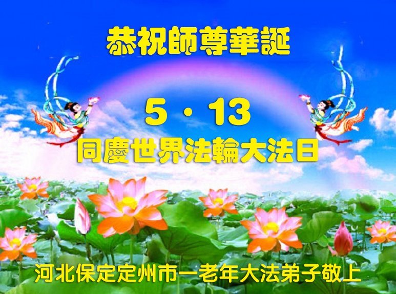 師父您好!恭祝師父生日快樂!同慶5.13世界法輪大法日!弟子感恩師父的救度,無以言表,唯有精進實修,做好作為大法弟子該做的一切。