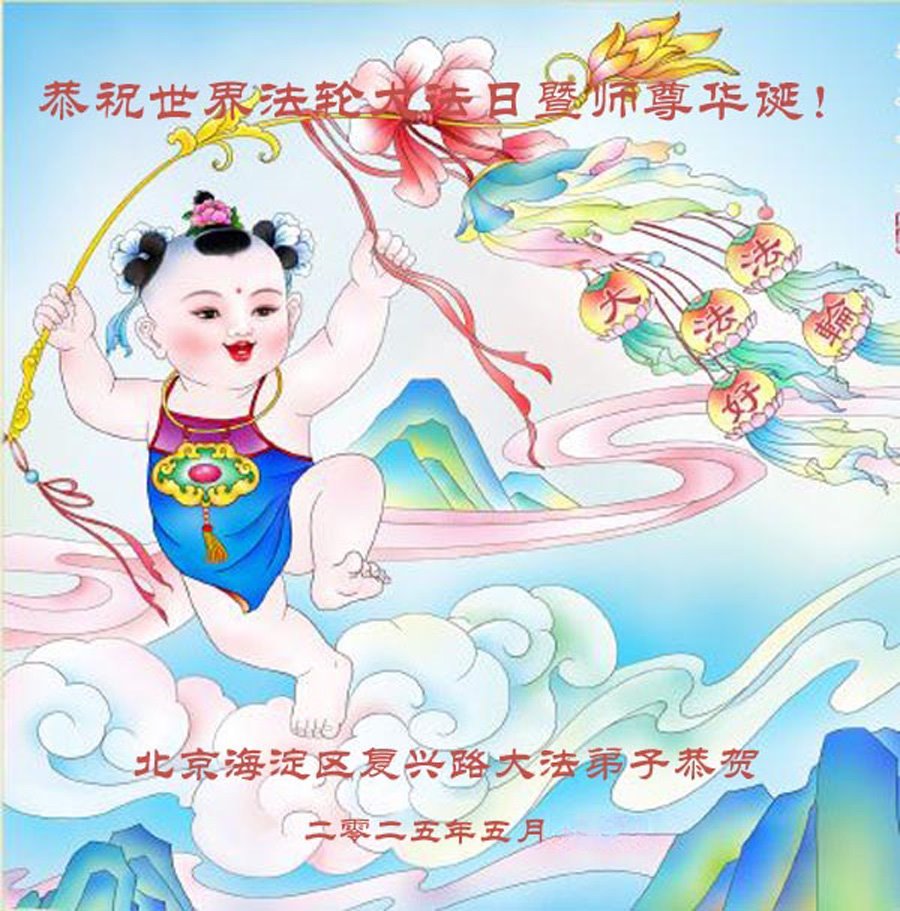 看我們億萬中國大陸大法弟子的祝賀,已穿越千山萬水,與海外大法弟子的祝賀匯合,如洪流滾滾。再次敬祝師尊生日快樂!