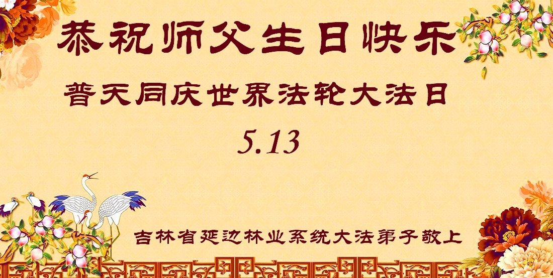 吉林省延邊林業系統大法弟子恭賀世界法輪大法日暨敬祝慈悲偉大的師尊生日快樂!