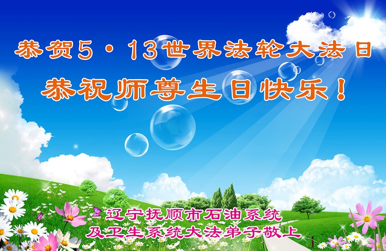 遼寧省撫順市石油系統及衛生系統大法弟子恭賀世界法輪大法日!