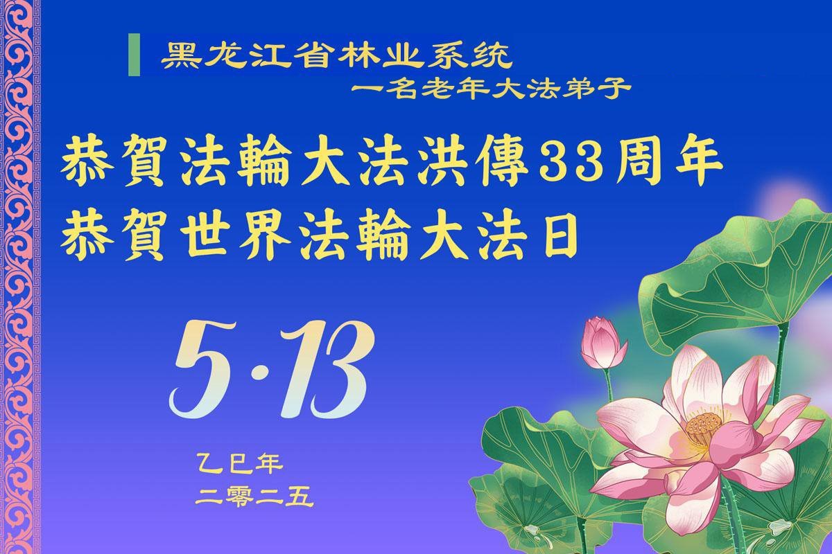 黑龍江省林業系統一名老年大法弟子恭賀世界法輪大法日!恭祝師尊生日快樂!