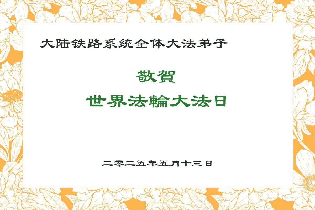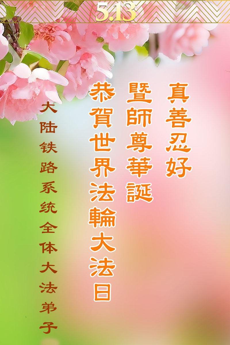 中國大陸鐵路系統大法弟子慶賀5.13世界法輪大法日!恭祝師父生日快樂!