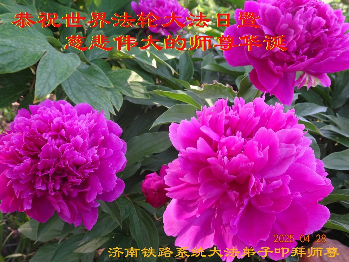 山東省濟南鐵路系統大法弟子叩拜師尊,恭祝世界法輪大法日暨慈悲偉大的師尊華誕!
