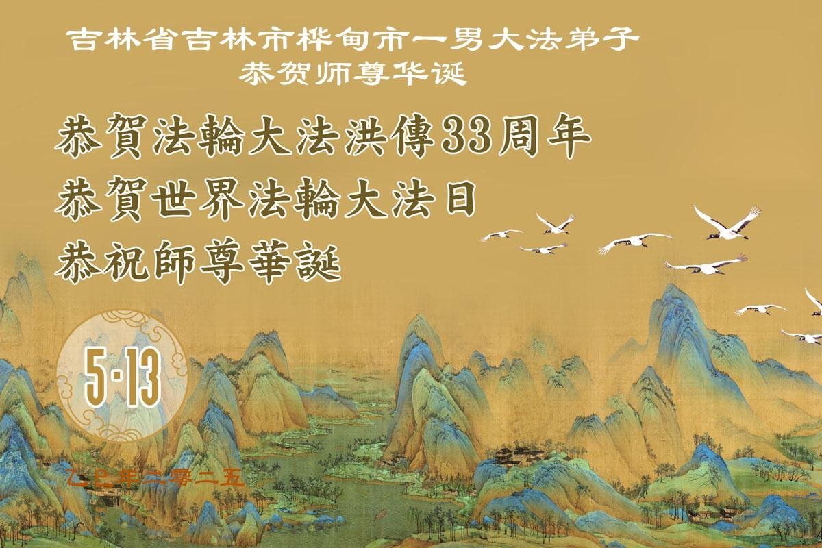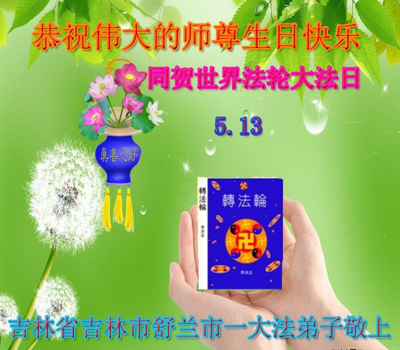吉林市一大法弟子恭賀世界法輪大法日暨師尊華誕!