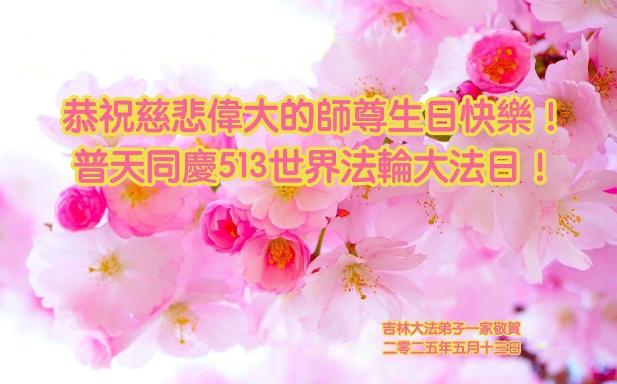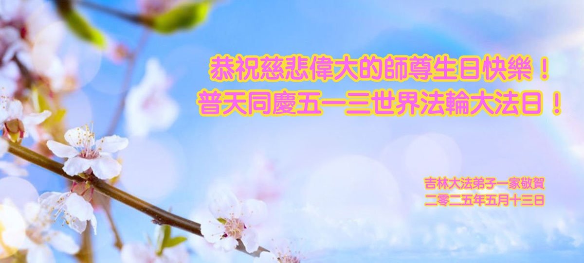 吉林大法弟子一家恭祝師尊生日快樂!普天同慶世界法輪大法日!