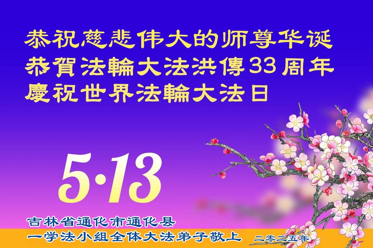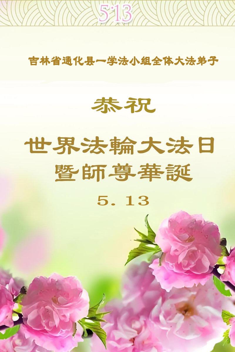 吉林省通化市通化縣一學法小組全體大法弟子恭賀世界法輪大法日!敬祝慈悲偉大的師尊華誕!恭賀法輪大法洪傳33週年!