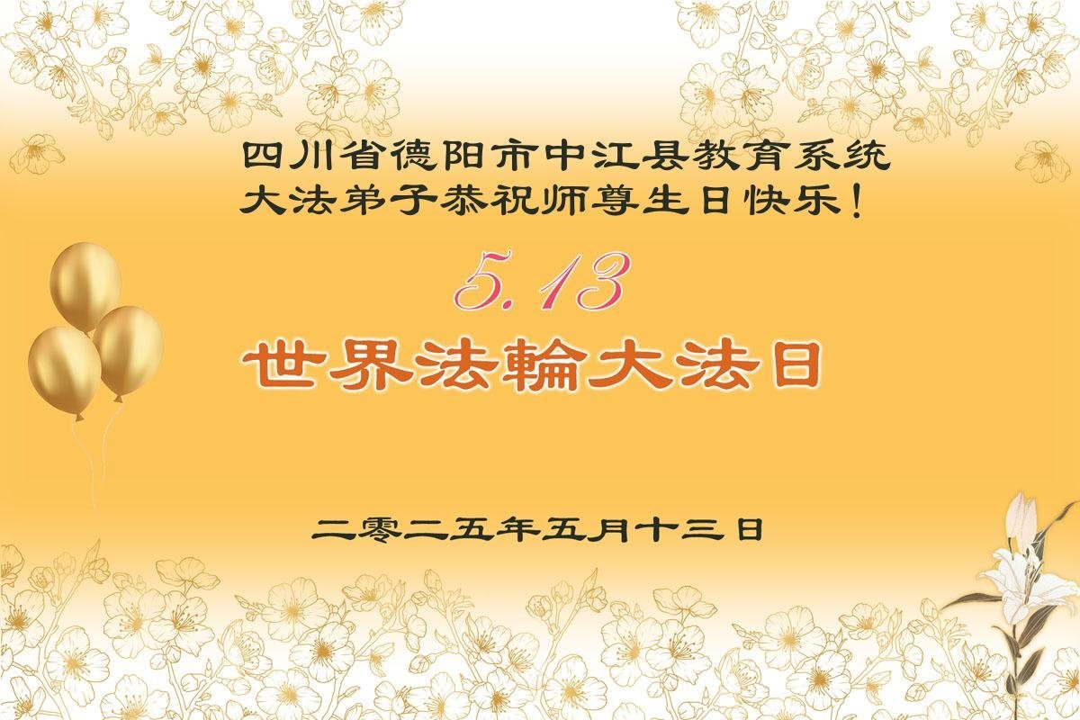 四川省德陽市中江縣教育系統大法弟子恭賀世界法輪大法日!恭祝慈悲偉大的師尊生日快樂!