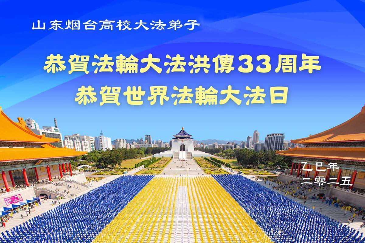 山東省煙台高校大法弟子敬賀世界法輪大法日!
