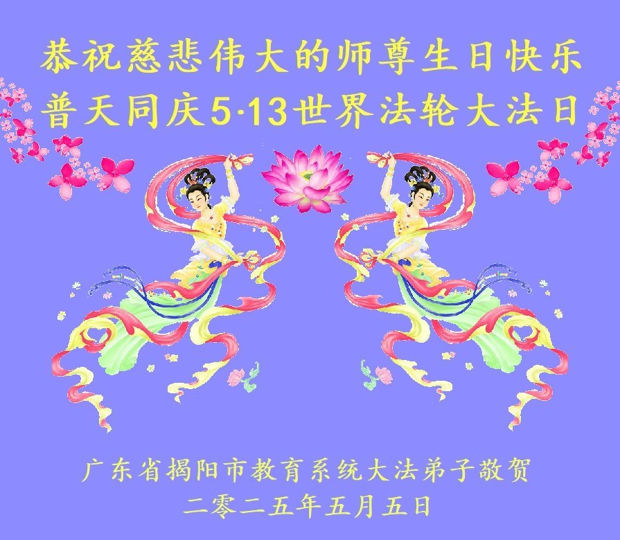 廣東省揭陽市教育系統大法弟子恭賀世界法輪大法日!恭祝慈悲偉大的師尊生日快樂!