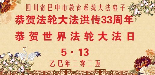 四川省巴中市教育系統大法弟子恭賀法輪大法洪傳33週年!