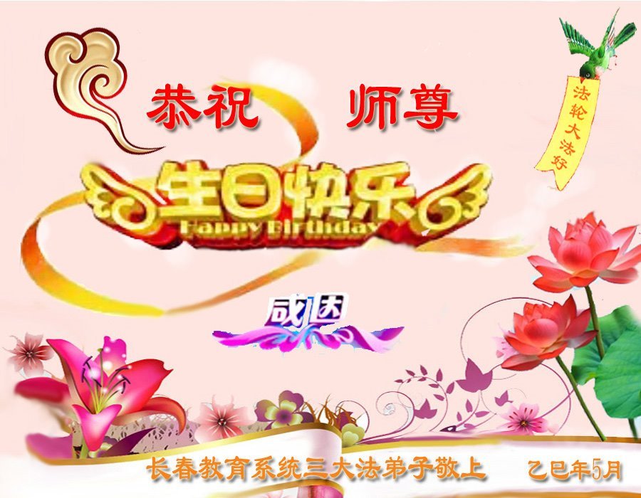 吉林省長春市教育系統三位大法弟子慶賀世界法輪大法日!恭祝師尊生日快樂!