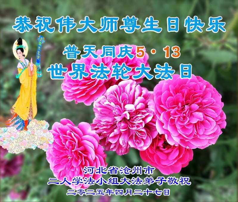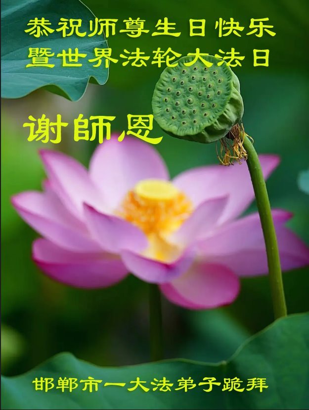在這普天同慶的日子裏,我們感謝師父的再造之恩,弟子們送上最誠摯恭敬的祝願,恭祝師父生日快樂!恭賀世界法輪大法日!師父您辛苦了!