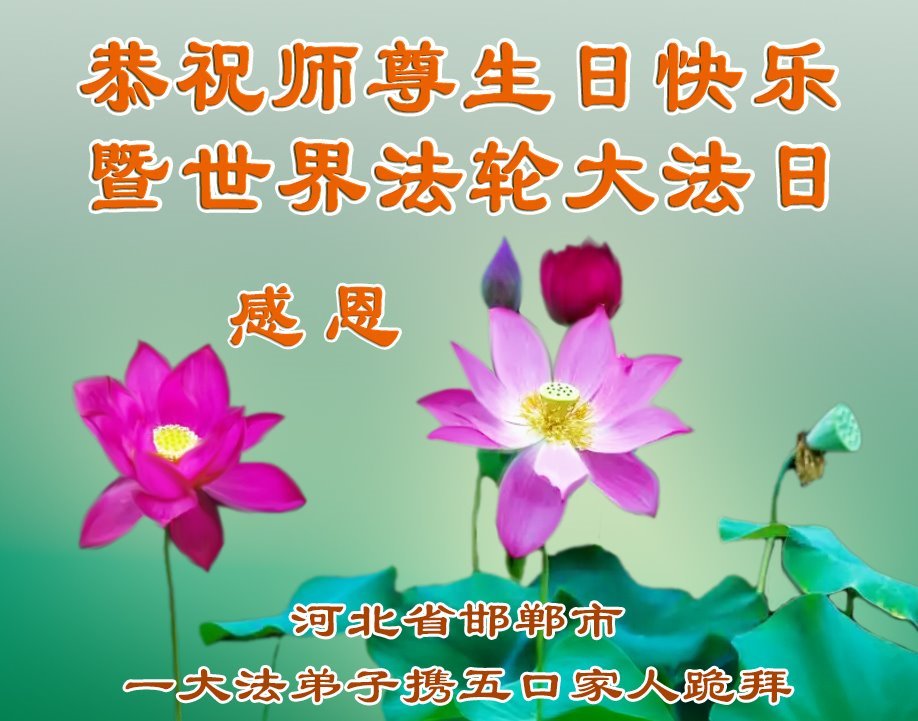 河北省邯鄲市一大法弟子攜五口家人敬上