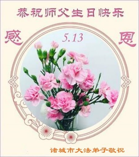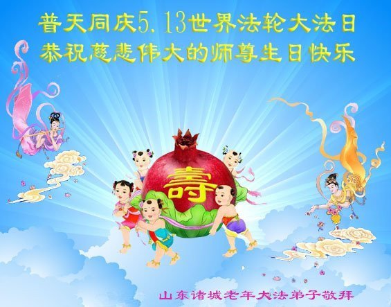 山東省濰坊市諸城市大法弟子恭賀法輪大法日!恭祝師父生日快樂!