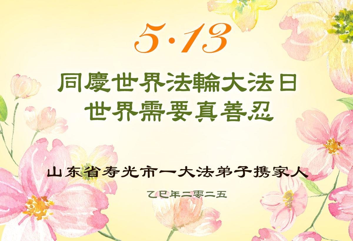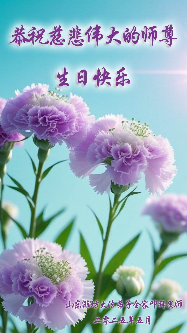 山東省濰坊市大法弟子及家人恭賀世界法輪大法日!恭祝師尊生日快樂!