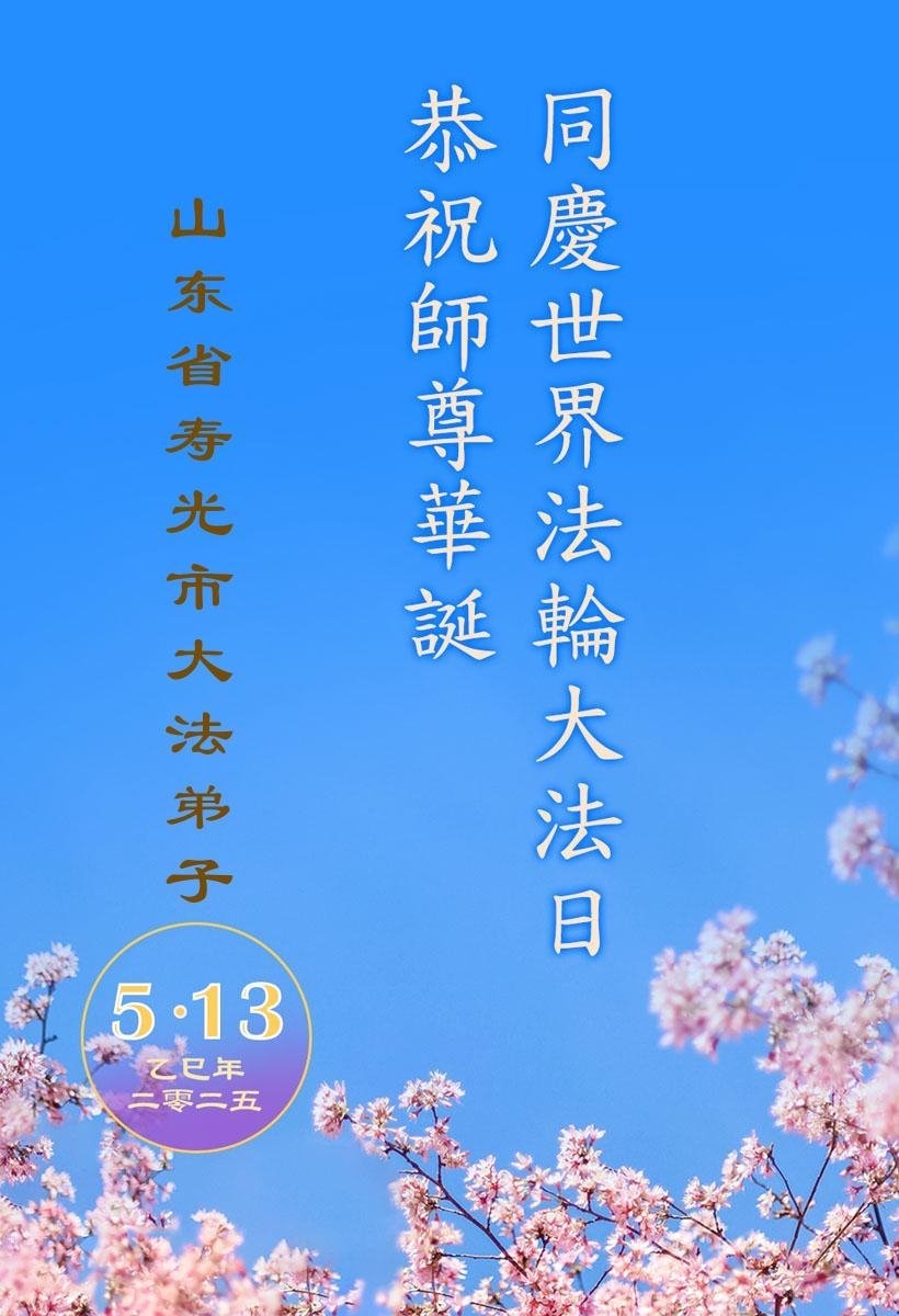 山東省濰坊市壽光市大法弟子恭賀世界法輪大法日暨師尊華誕!