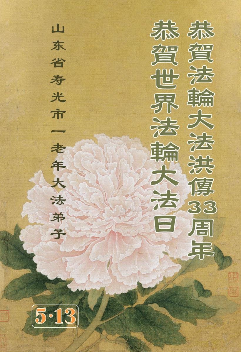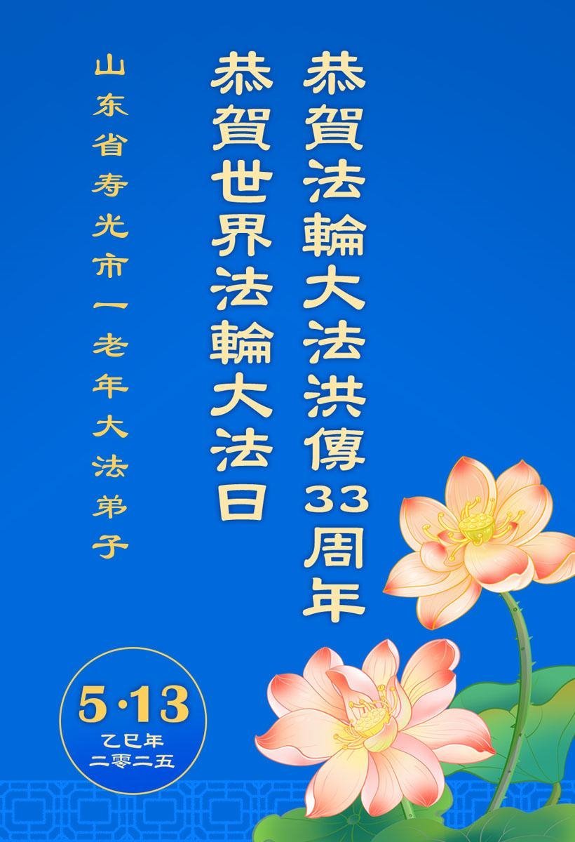 山東省濰坊市壽光市一老年大法弟子恭賀世界法輪大法日!