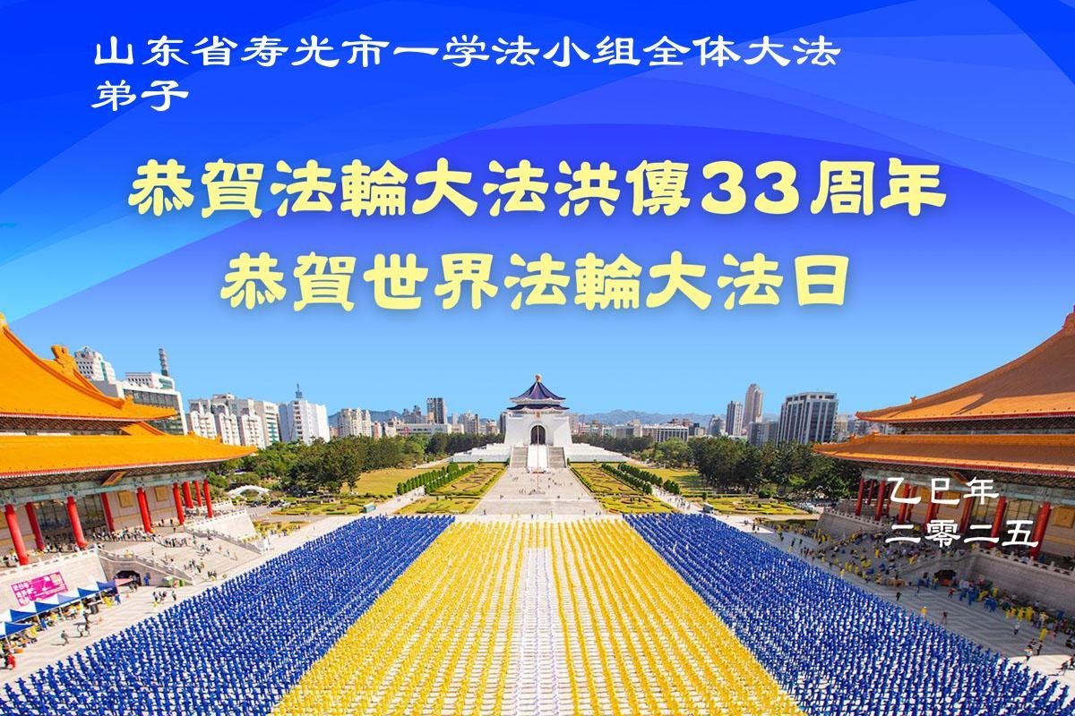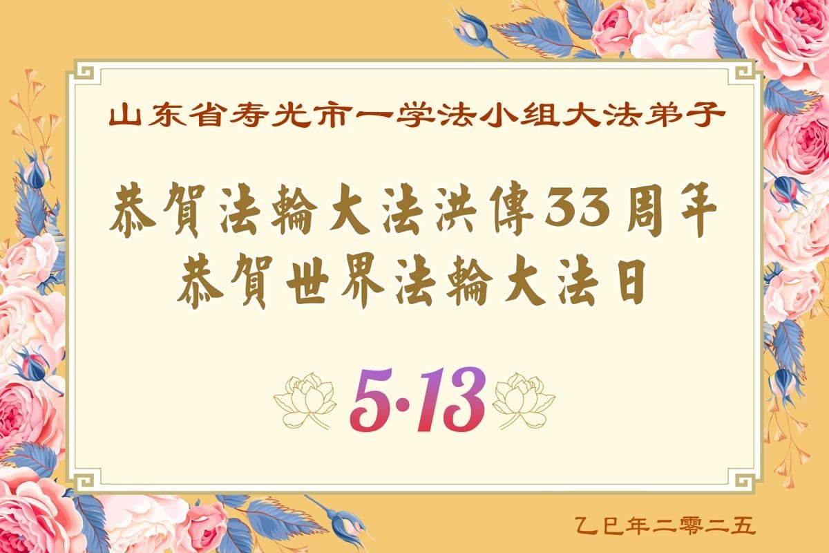山東省濰坊市壽光市一學法小組大法弟子恭賀世界法輪大法日!