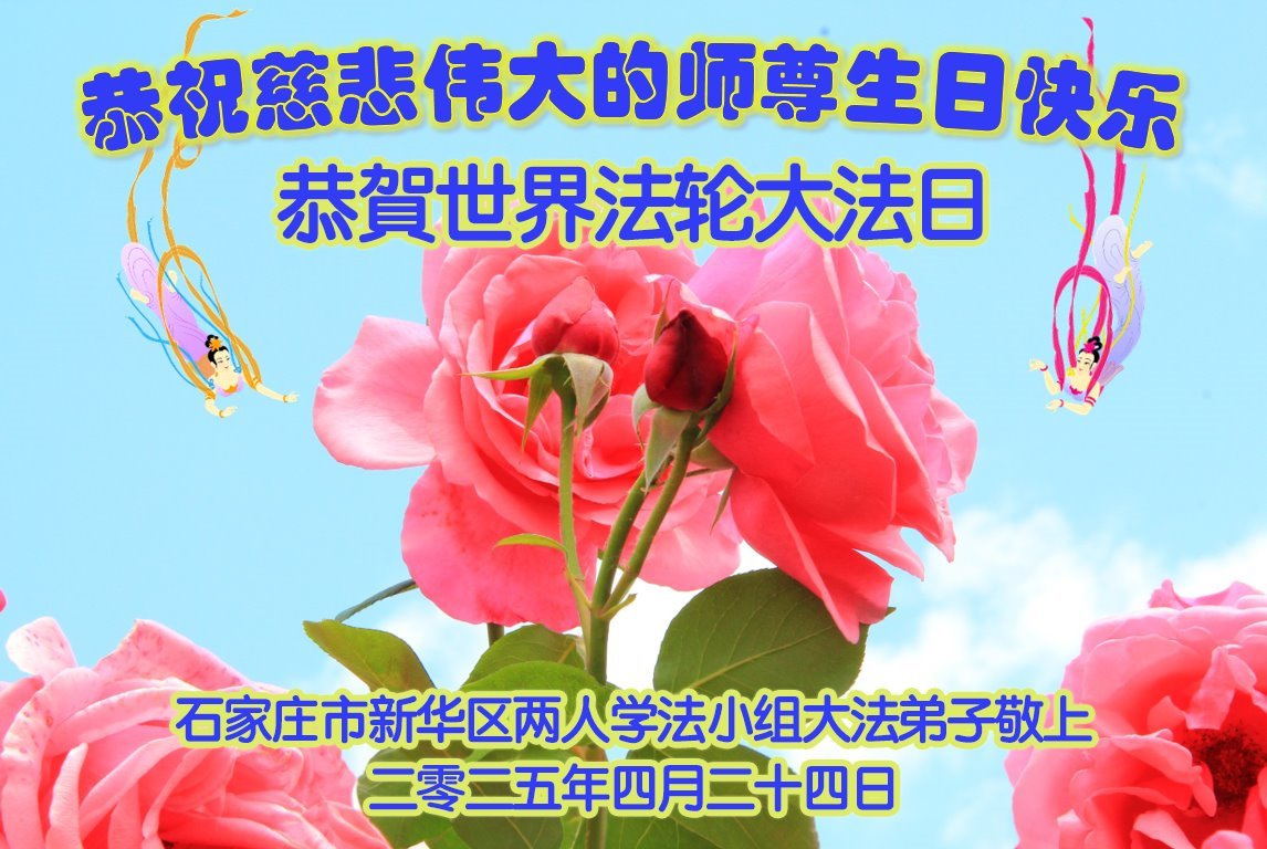 河北省石家莊市新華區兩人學法小組大法弟子恭賀世界法輪大法日!恭祝師尊生日快樂!
