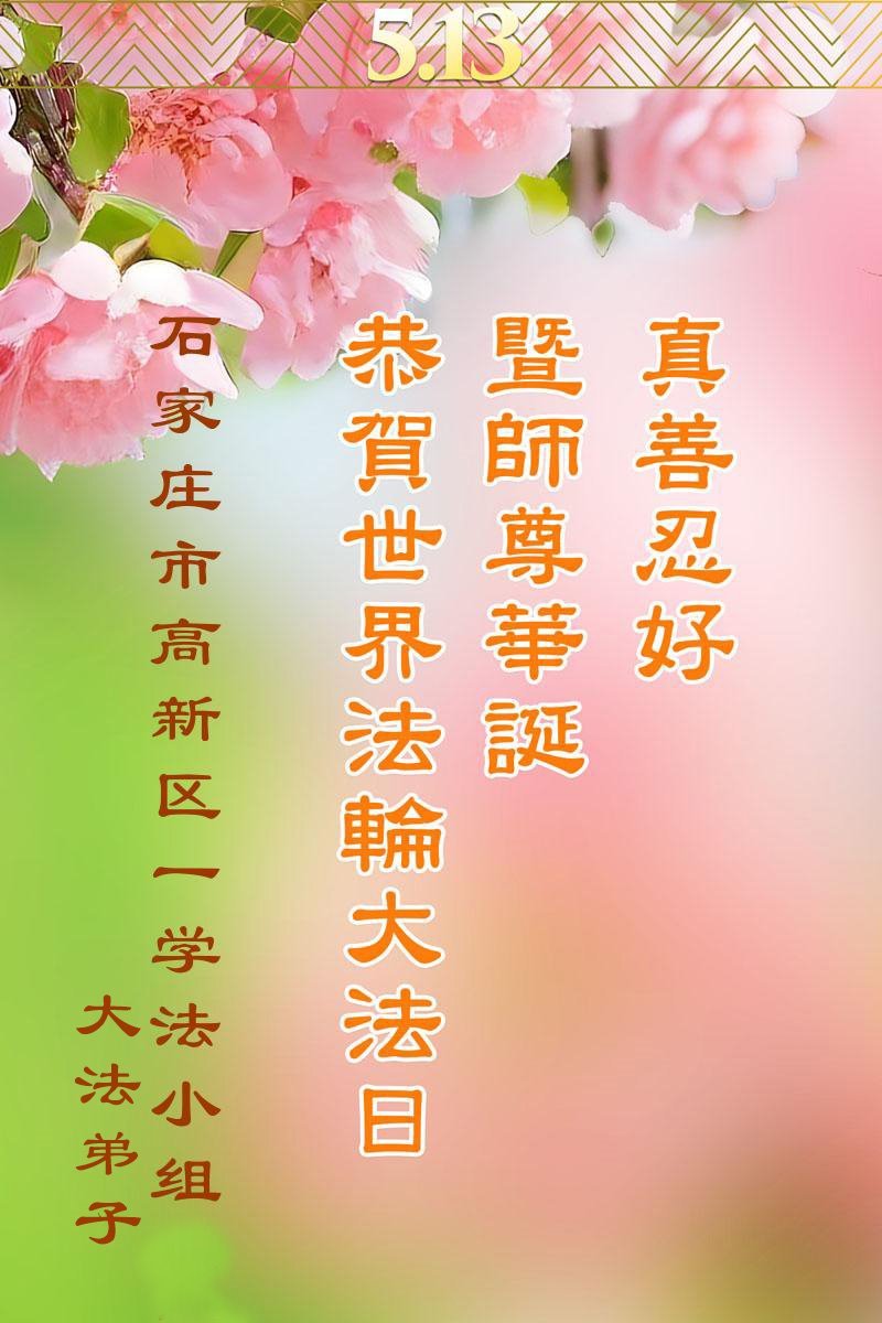 河北省石家莊市高新區一學法小組大法弟子恭賀世界法輪大法日暨師父華誕!