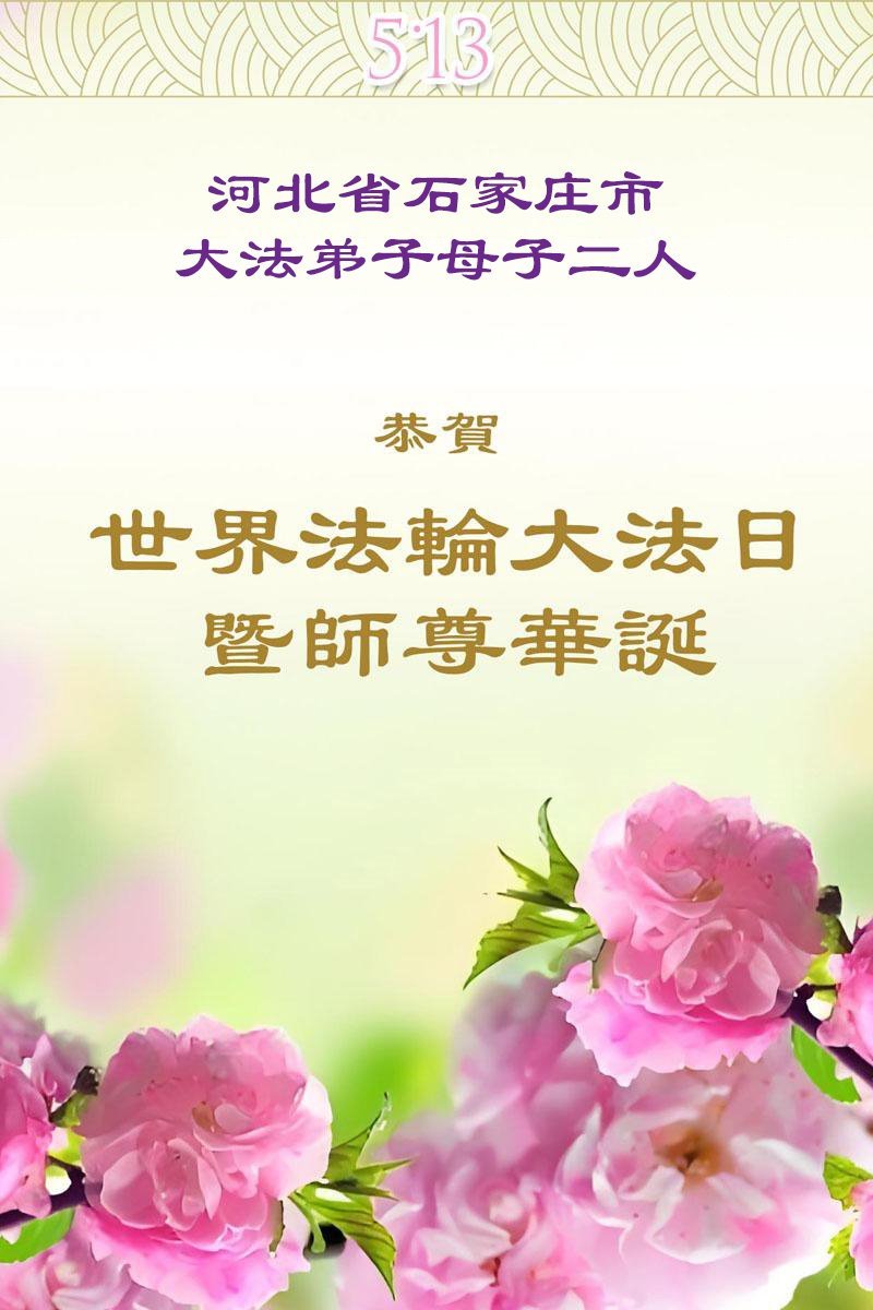 河北省石家莊市母子二人大法弟子恭賀世界法輪大法日暨師尊華誕!