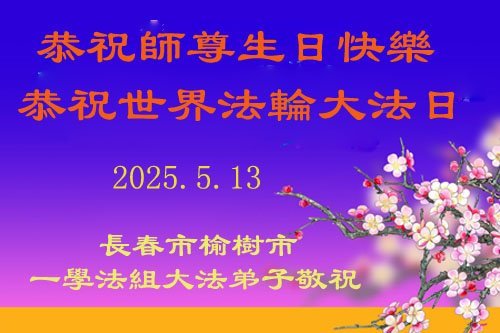 吉林省長春市榆樹市一學法組大法弟子恭祝師尊生日快樂!恭賀世界法輪大法日!