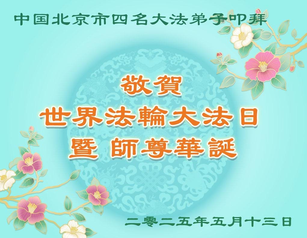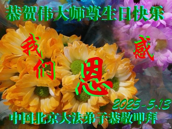 二零二五年五月十三日即將來臨,北京六位大法弟子和家人恭祝慈悲偉大的師尊生日快樂!法輪大法好!真善忍好!普天同慶法輪大法洪傳三十三週年暨世界法輪大法日!