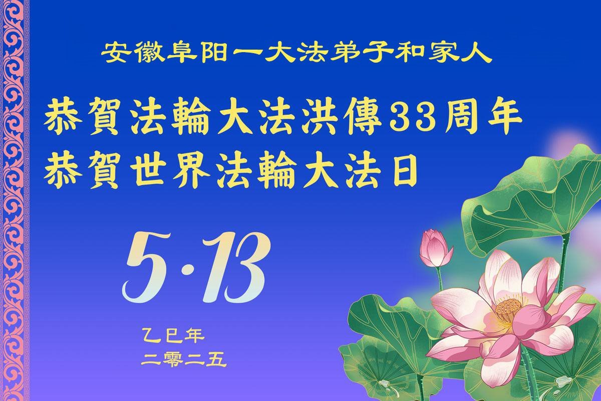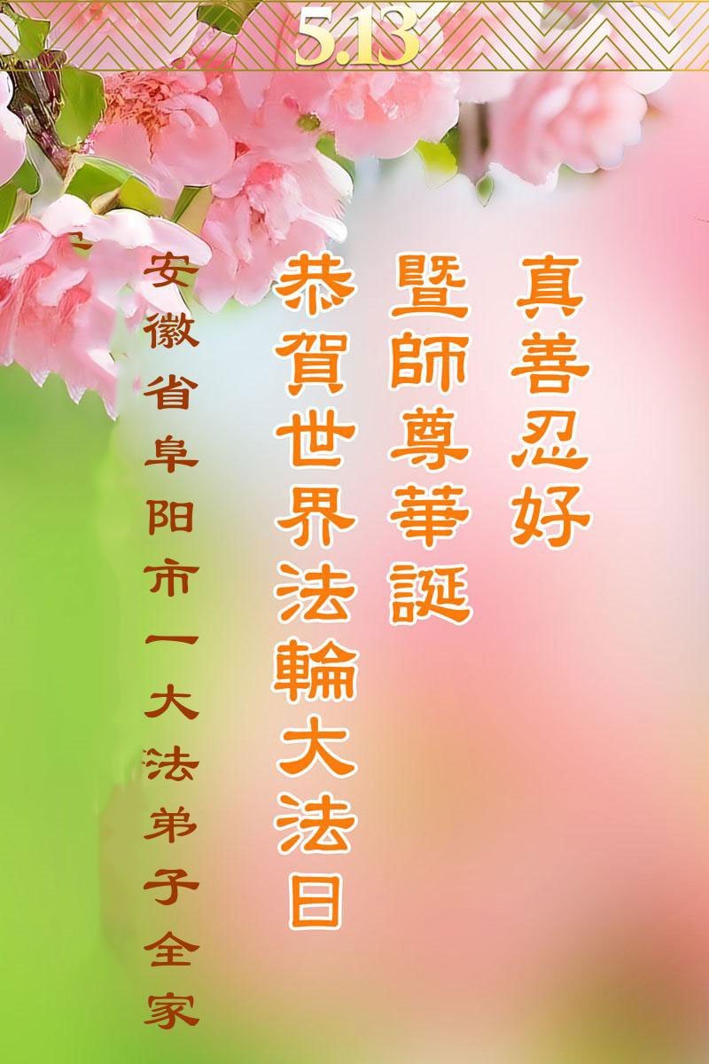 安徽省阜陽市大法弟子恭祝慈悲偉大的師尊生日快樂!慶祝世界法輪大法日!
