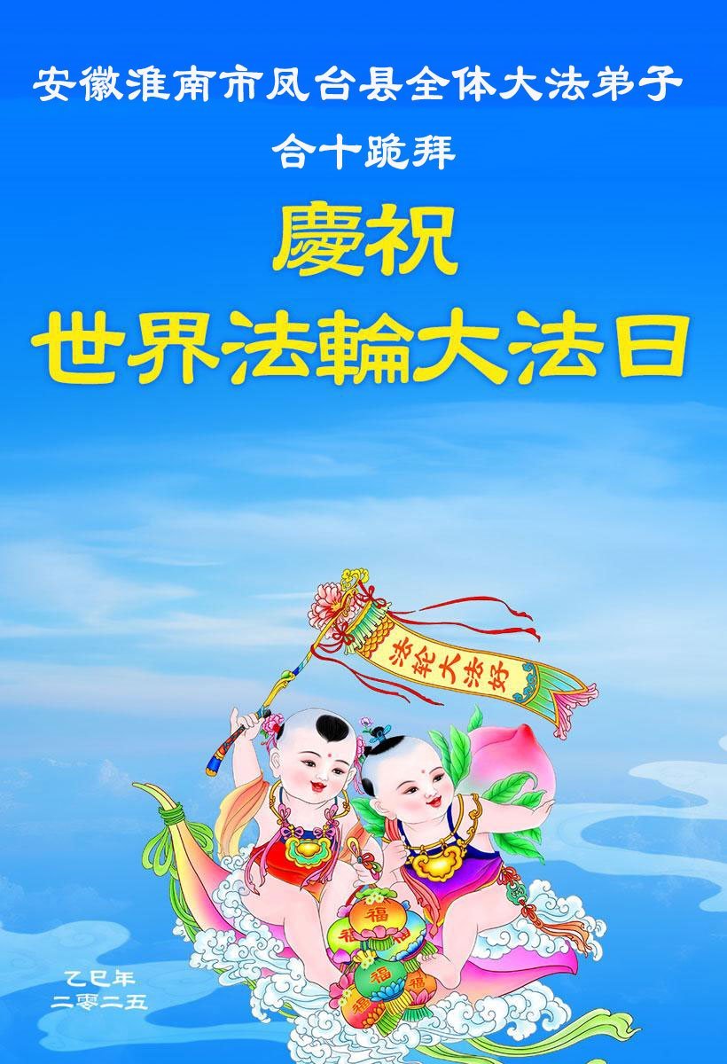 安徽省淮南市鳳台縣全體大法弟子恭祝師尊生日快樂!普天同慶、同頌世界法輪大法日!