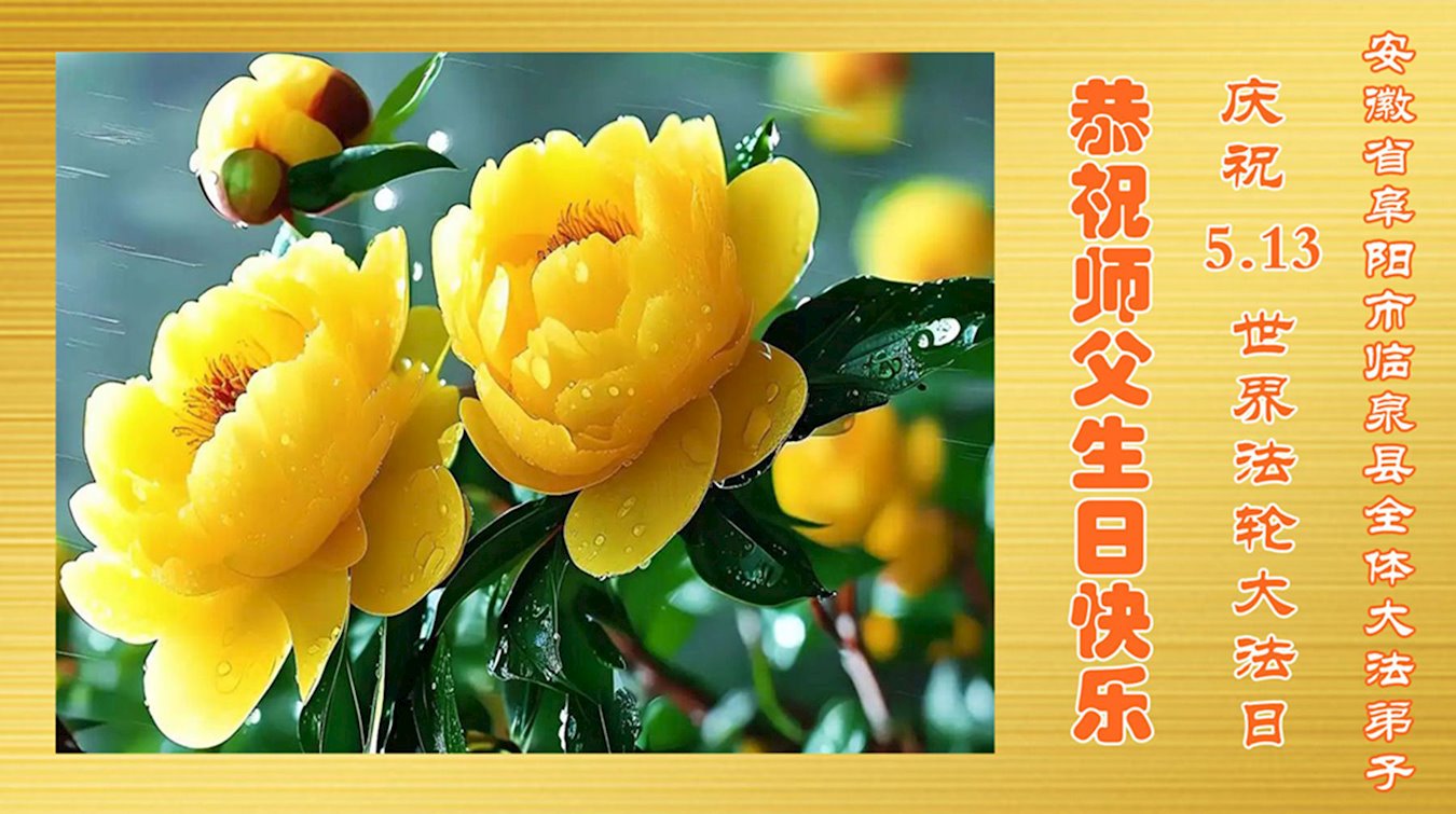 安徽省阜陽市大法弟子恭賀世界法輪大法日!恭祝師尊生日快樂!