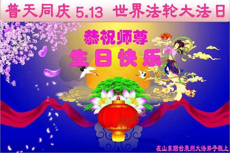 山東煙台大法弟子恭賀世界法輪大法日!恭祝師尊生日快樂!