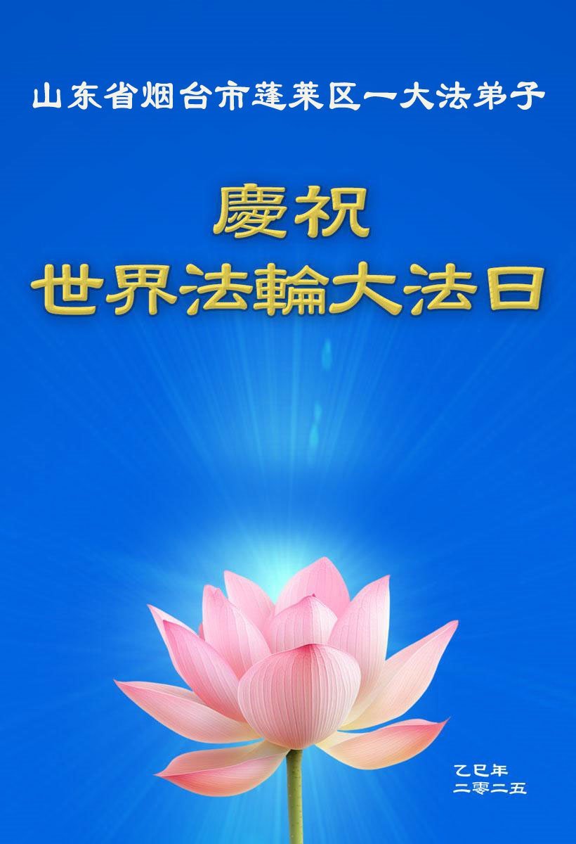 山東省煙台市蓬萊區一大法弟子恭祝慈悲偉大的師尊生日快樂!慶祝世界法輪大法日!
