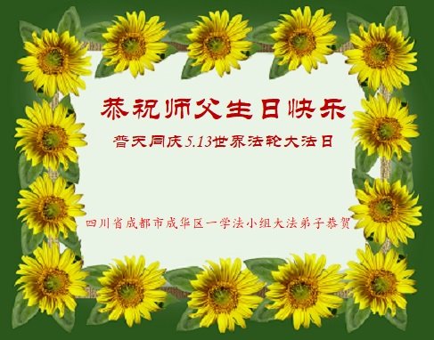 四川省成都市成華區一學法小組大法弟子恭祝慈悲偉大的師父生日快樂!