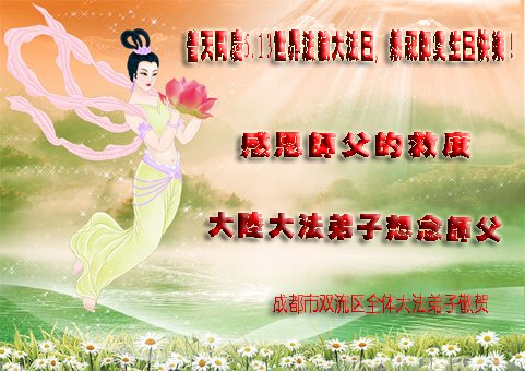 感恩師尊的慈悲苦度,衷心期盼迎接師尊早日重返大陸的那一天。恭賀師尊華誕,恭賀法輪大法日!