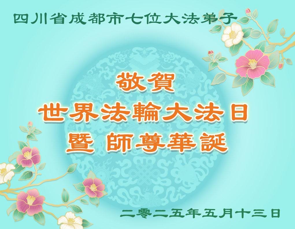 四川省成都市七名大法弟子敬賀世界法輪大法日暨師尊華誕!