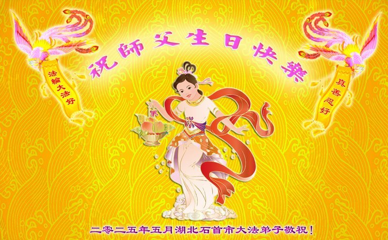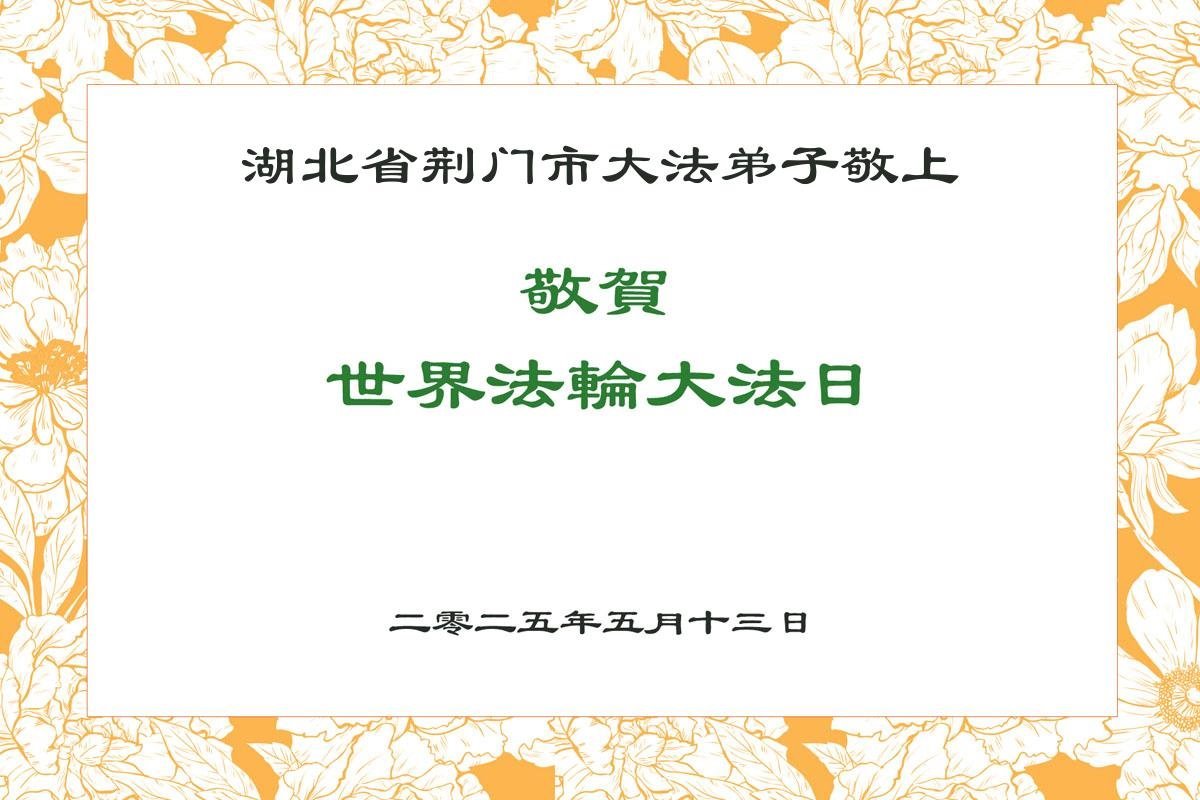 湖北省荊門市大法弟子恭祝慈悲偉大的師父生日快樂!敬賀世界法輪大法日!