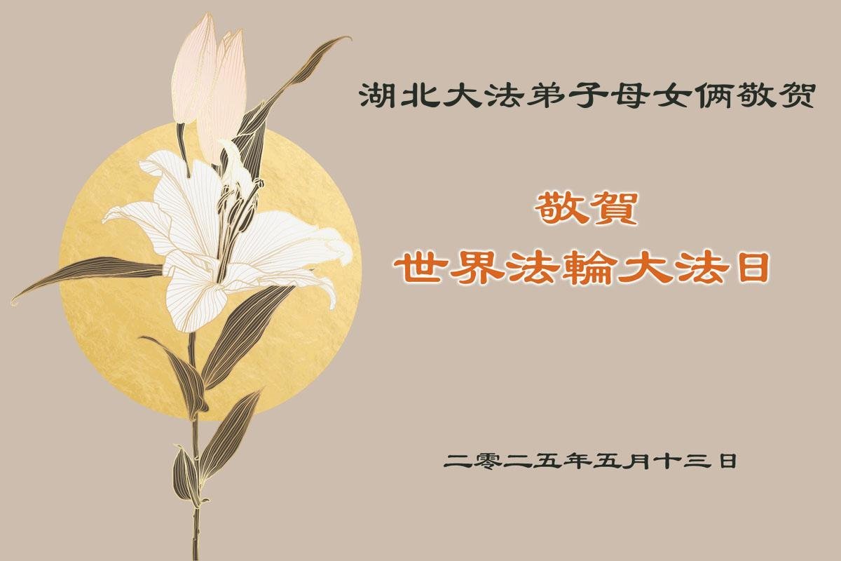 湖北大法弟子母女倆恭祝師父生日快樂!慶祝世界法輪大法日!叩拜師尊!