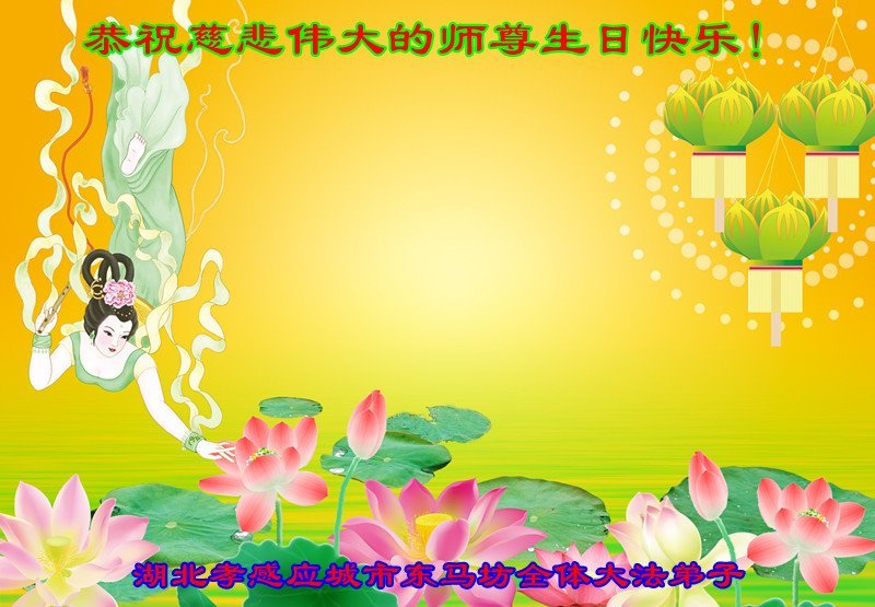 湖北孝感應城市東馬坊大法弟子恭祝慈悲偉大的師尊生日快樂!