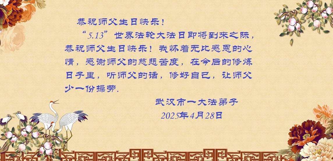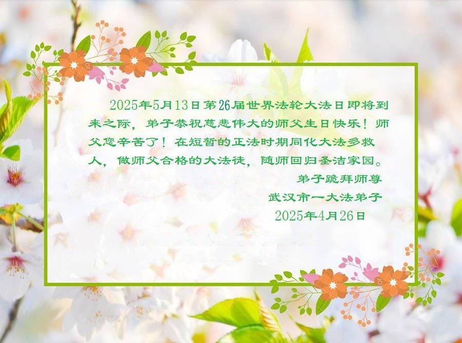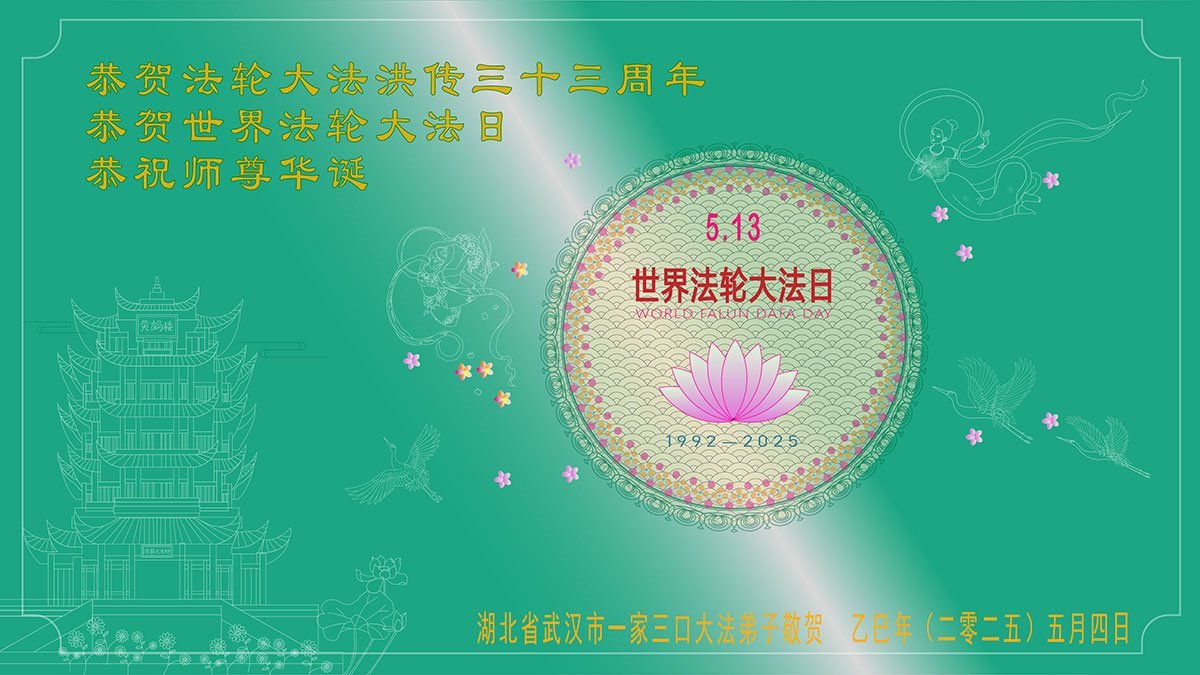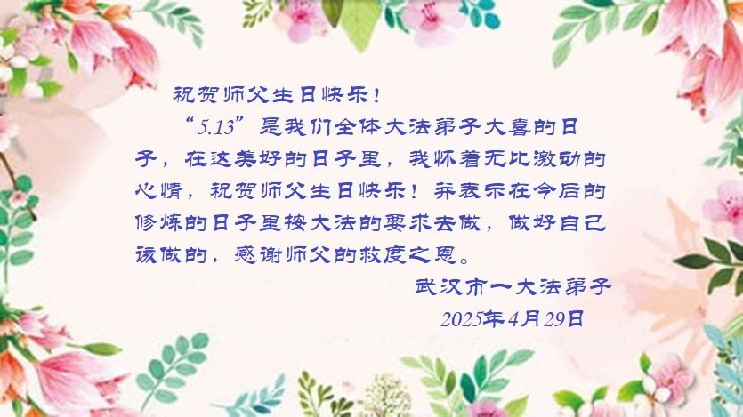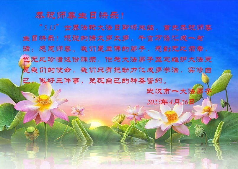 湖北省武漢一大法弟子敬賀世界法輪大法日!恭祝師父生日快樂!