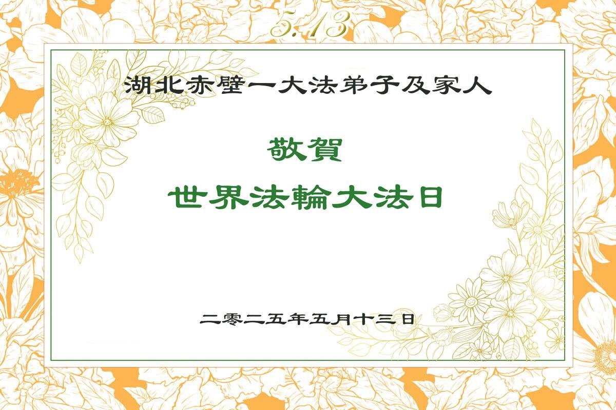 湖北省武漢一大法弟子敬賀法輪大法日!恭祝師父生日快樂!