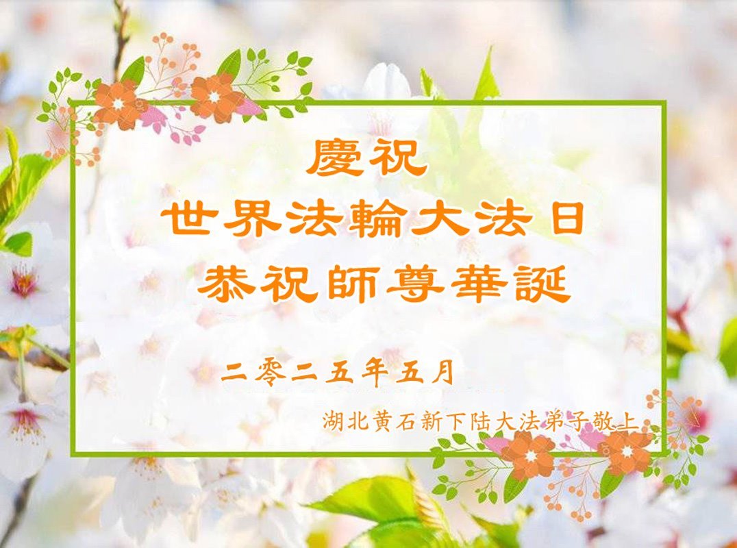 湖北省黃石新下陸大法弟子恭賀世界法輪大法日!