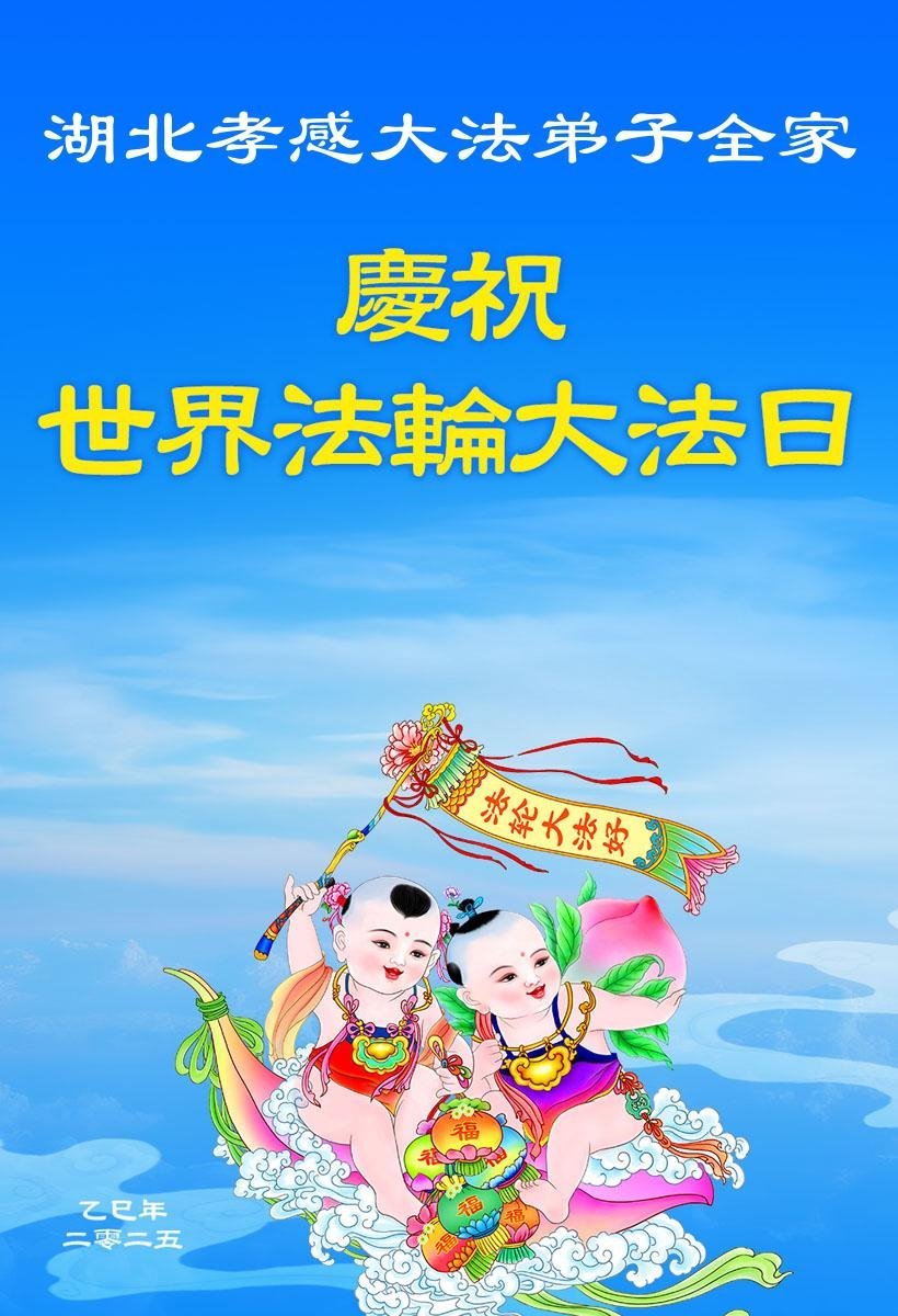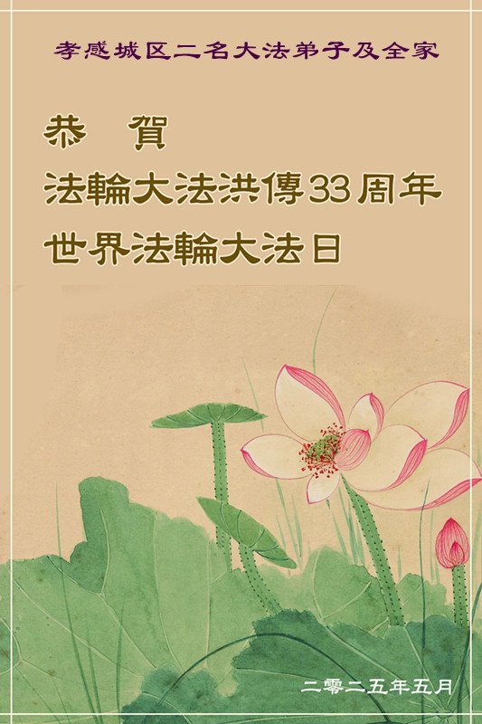 湖北省孝感市城區二名大法弟子及全家恭祝師尊生日快樂!恭賀世界法輪大法日!