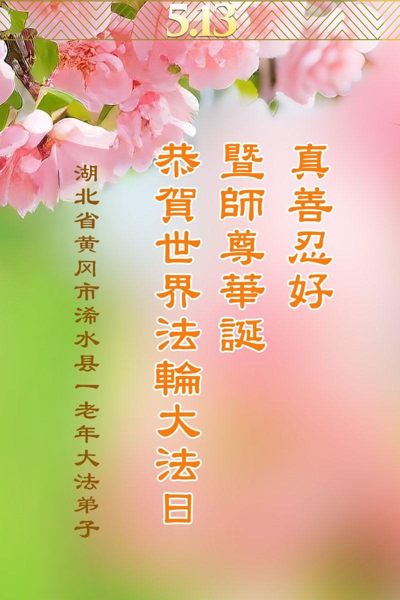 湖北省黃岡市浠水縣一老年大法弟子恭賀世界法輪大法日暨師尊華誕!