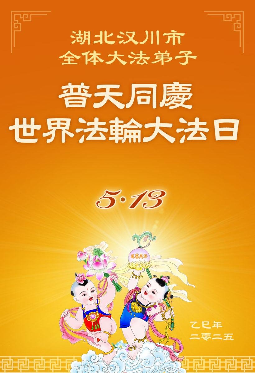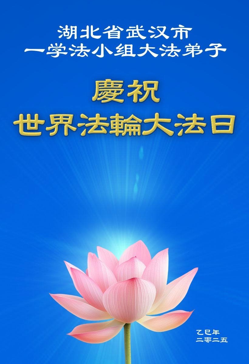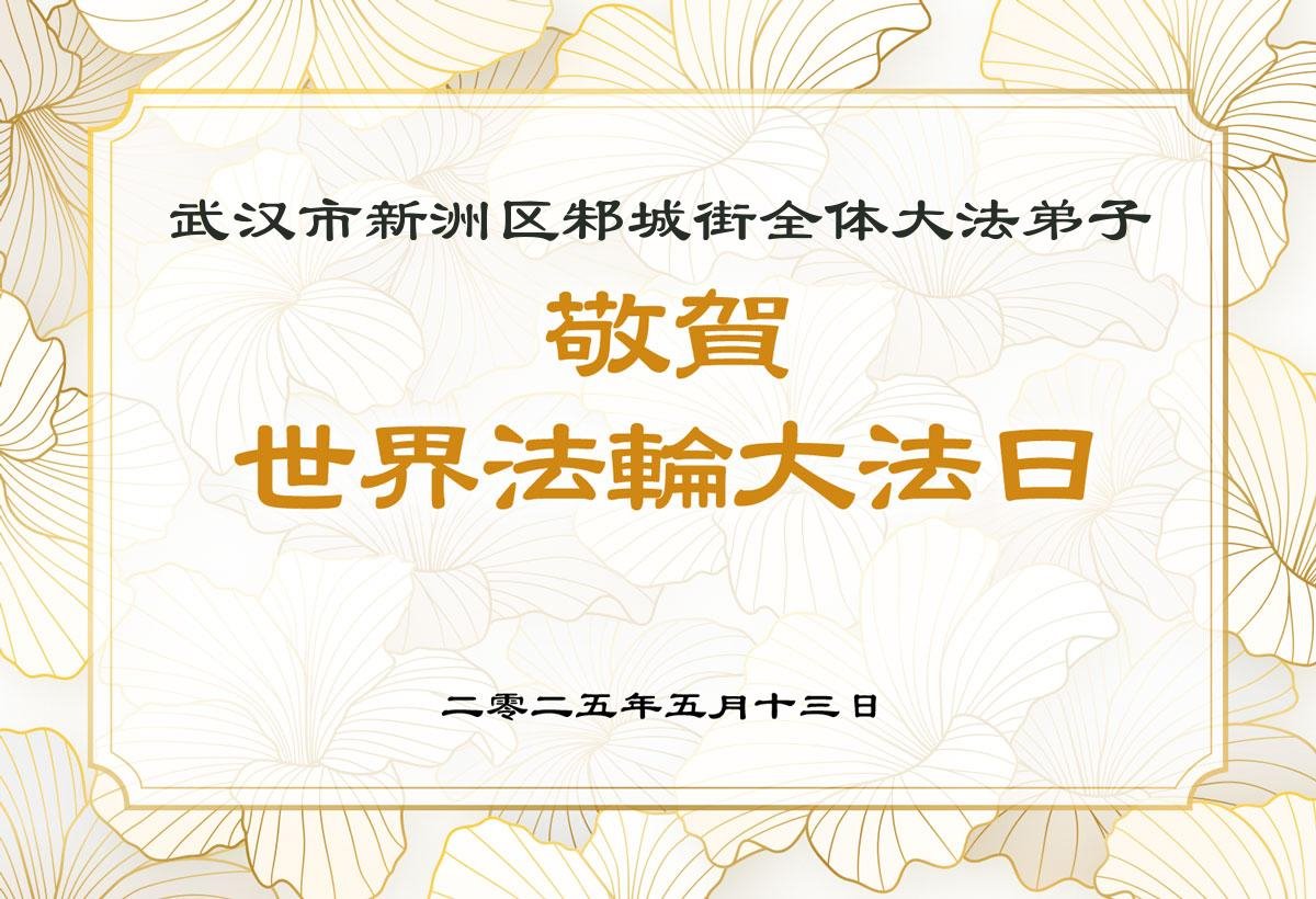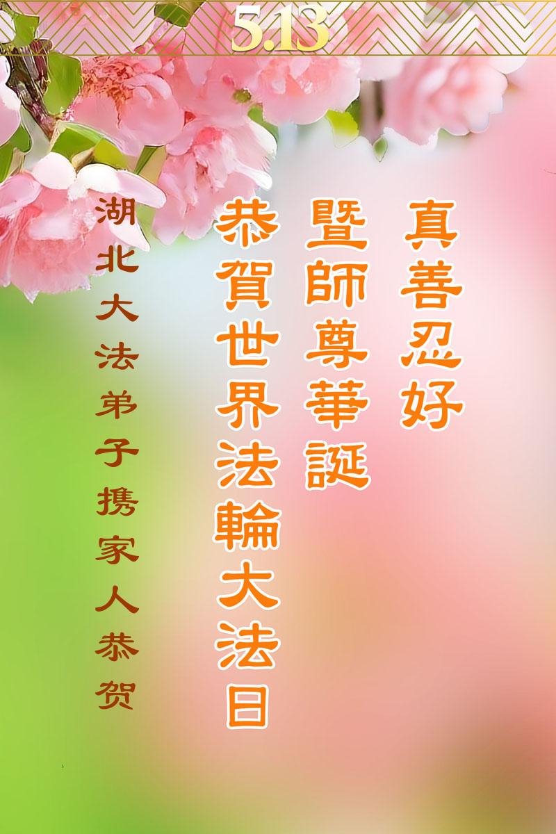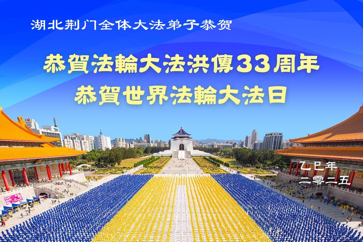 在這普天同慶的日子裏,恭祝師尊生日快樂!恭賀世界法輪大法日!湖北荊門大法弟子感恩師尊的救度,在今後的日子裏,弟子們會精進實修,以報師恩!