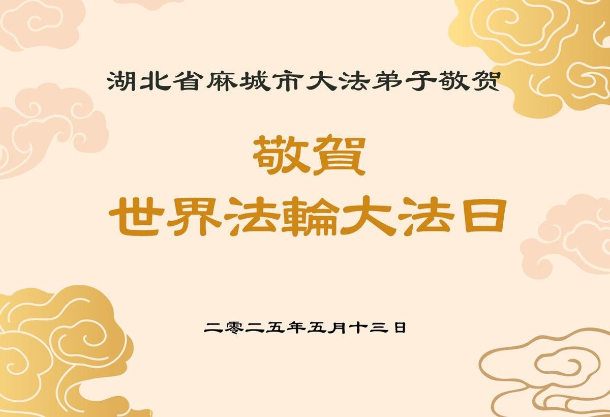 湖北省黃岡市麻城市大法弟子敬賀世界法輪大法日!