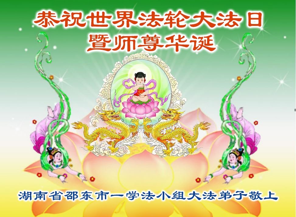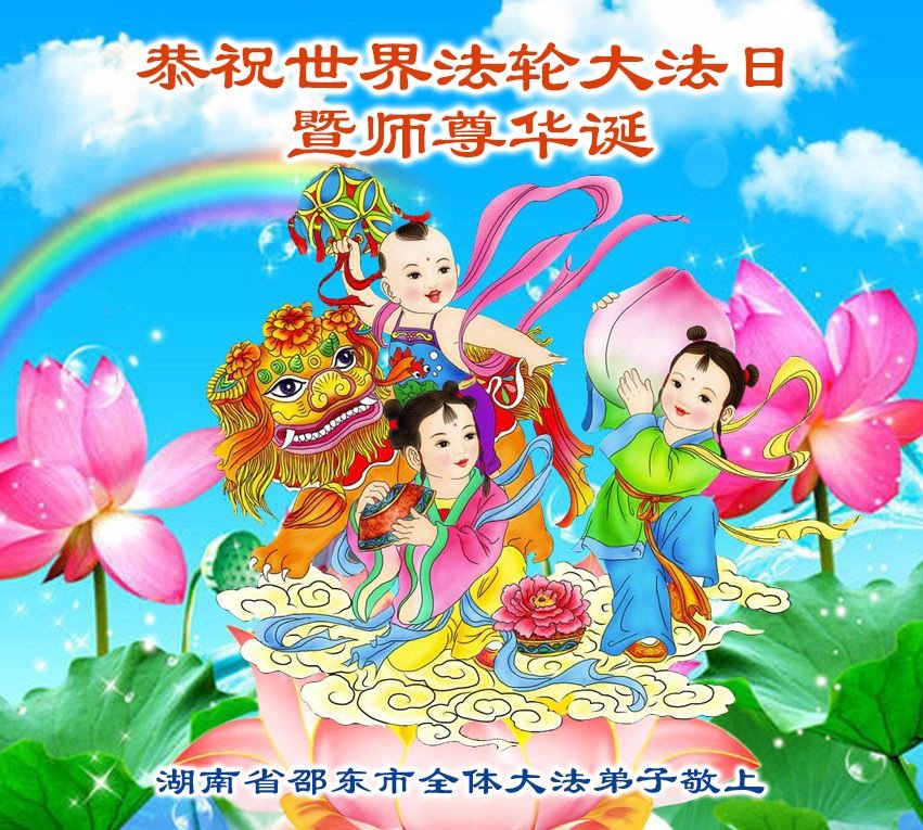 湖南省邵陽市大法弟子恭賀世界法輪大法日暨師尊華誕!