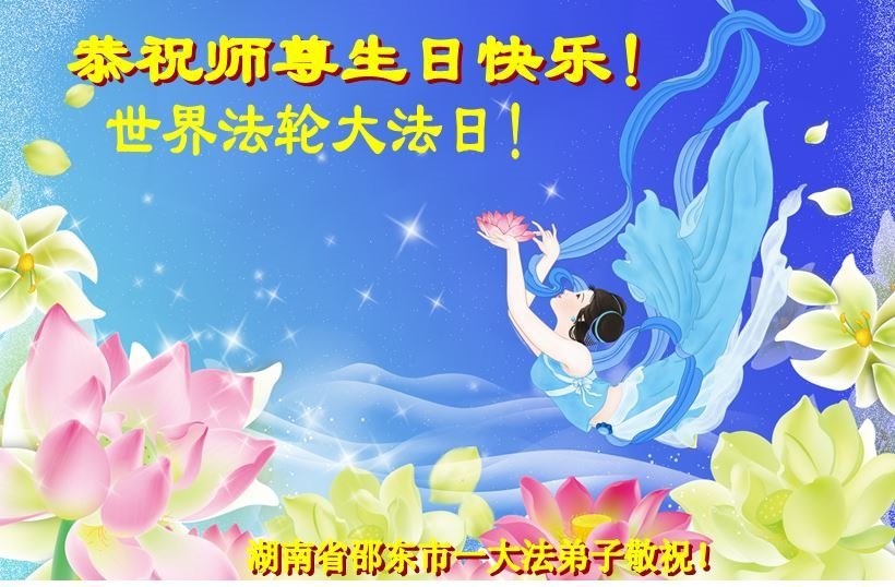 湖南省邵東市一大法弟子敬賀世界法輪大法日!敬祝師父生日快樂!