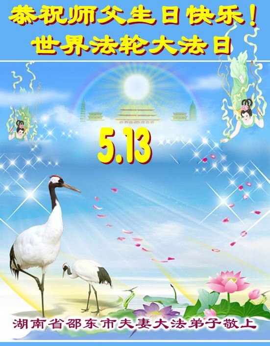 湖南省邵東市夫妻大法弟子恭賀世界法輪大法日!恭祝師尊生日快樂!